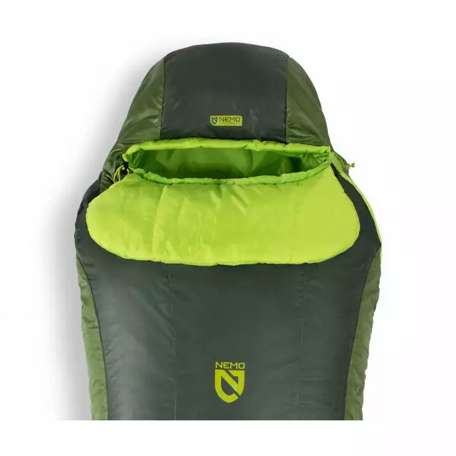 The NEMO Tempo Men’s synthetic sleeping bag blends roomy comfort with NEMO’s popular Spoon shape for a relaxed, crowd-pleasing fit that packs smaller than a rectangular sleeping bag. With a generous cut at the elbows and knees, side sleepers can shift positions comfortably throughout the night.